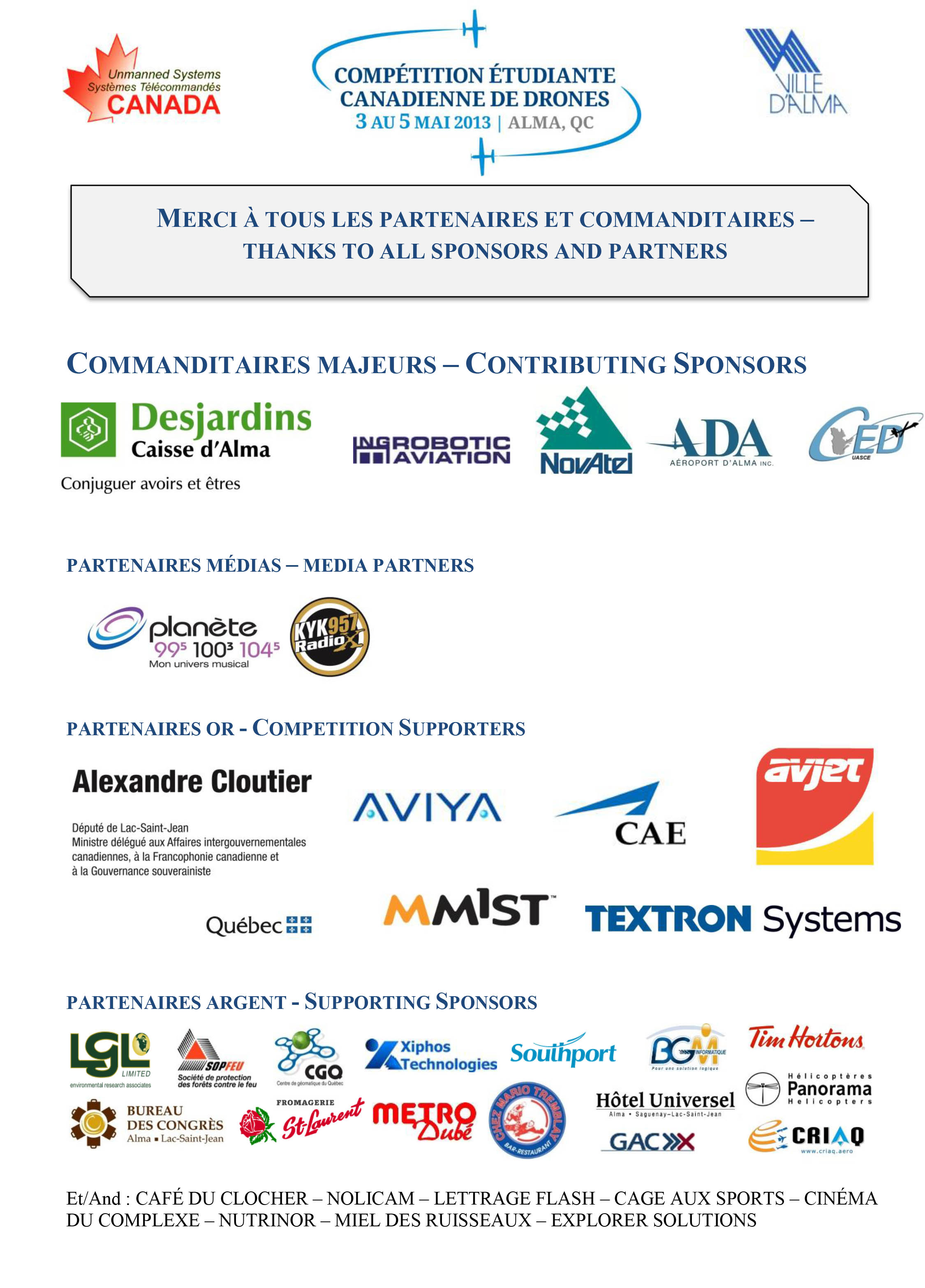 Commanditaires et partenaires de la compétition 2013